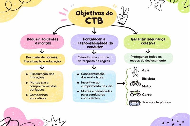 - Educação para o trânsito: prevê ações educativas (incluindo campanhas e programas), porque segurança não depende só de multa — depende de cultura e comportamento.