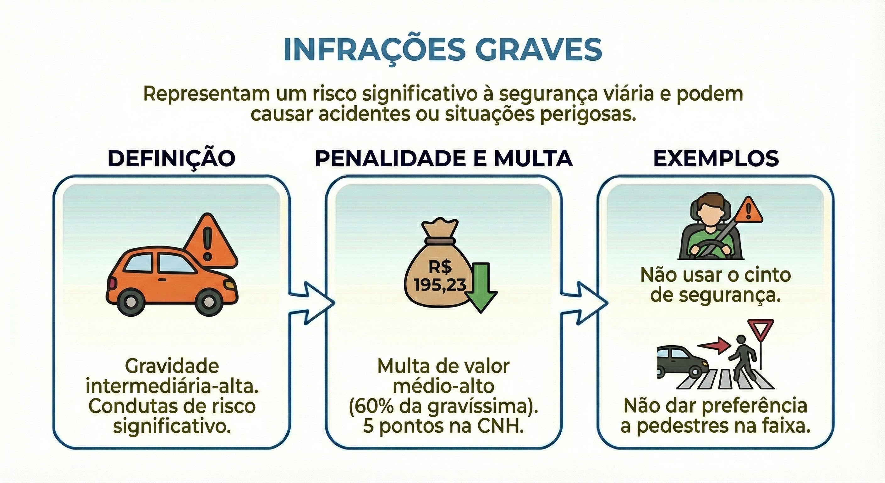 As infrações de trânsito representam violações das normas estabelecidas no Código de Trânsito Brasileiro (CTB) e estão entre os principais fatores que comprometem a segurança viária.