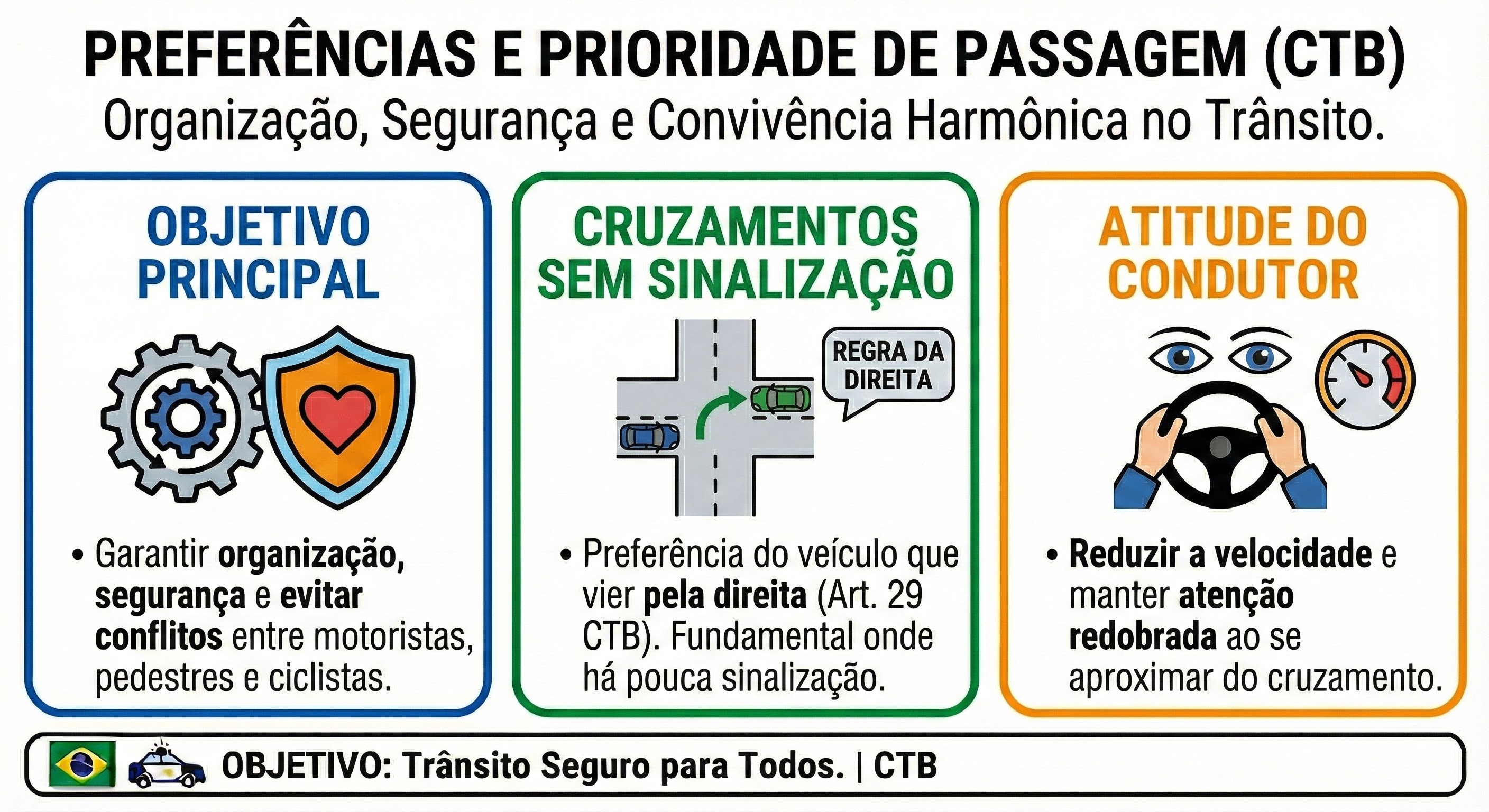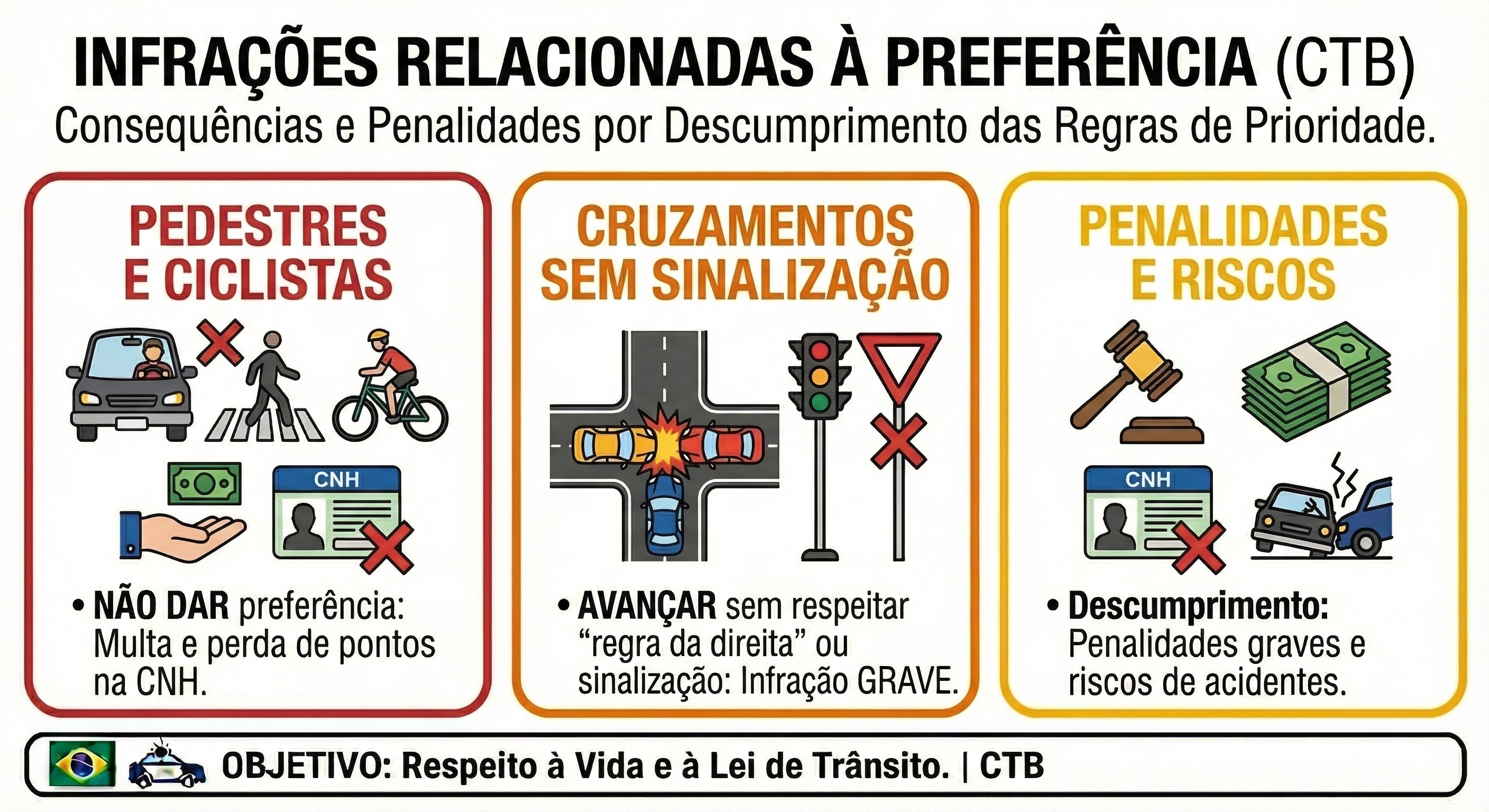 - Ignorar a Preferência: Não respeitar pedestres ou veículos prioritários.