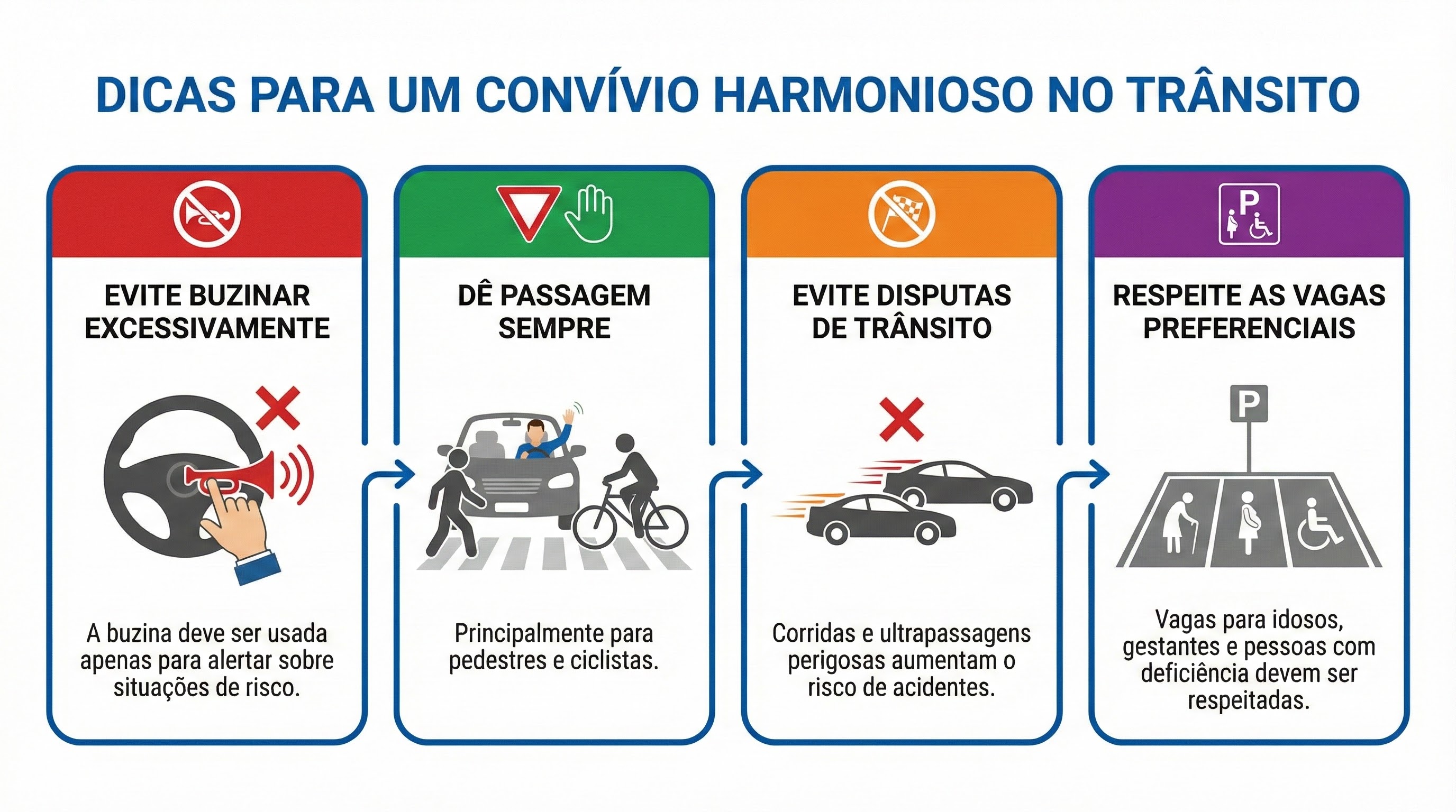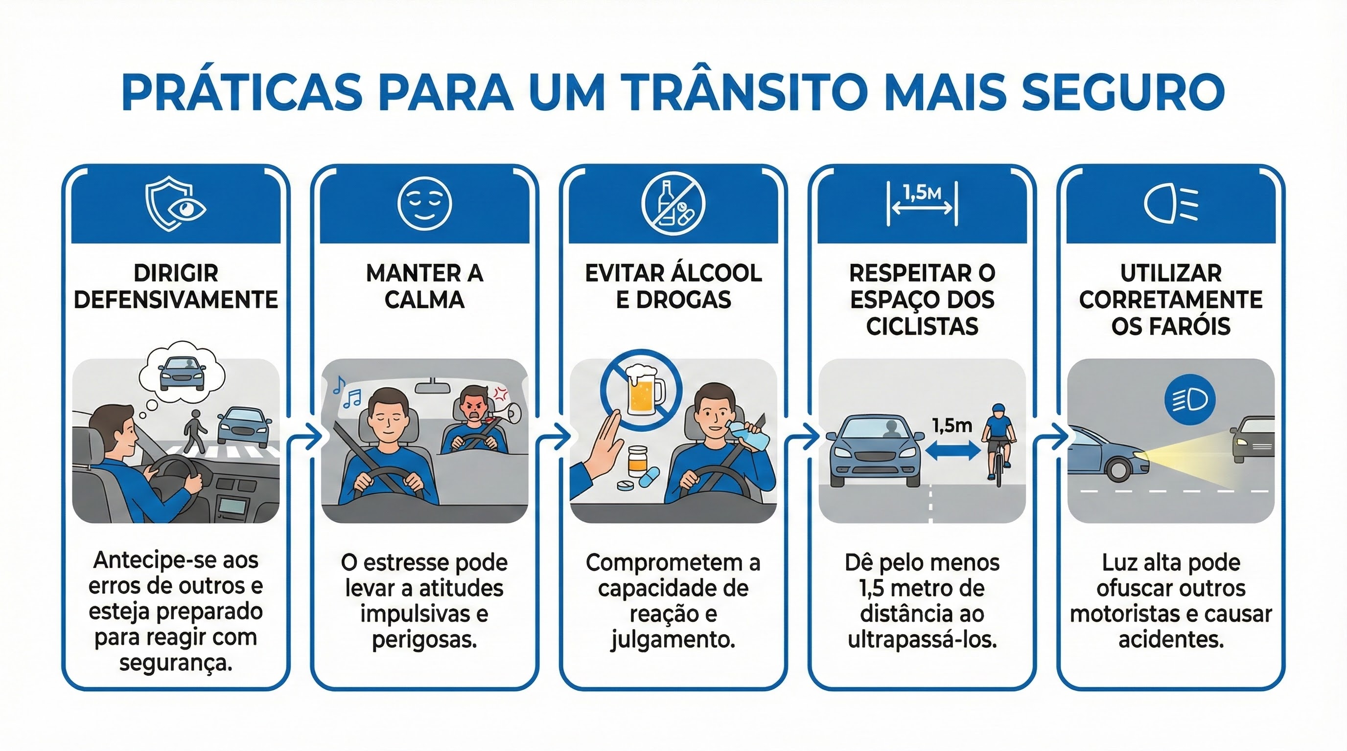 - Evite disputas de trânsito: Corridas e ultrapassagens perigosas aumentam o risco de acidentes.