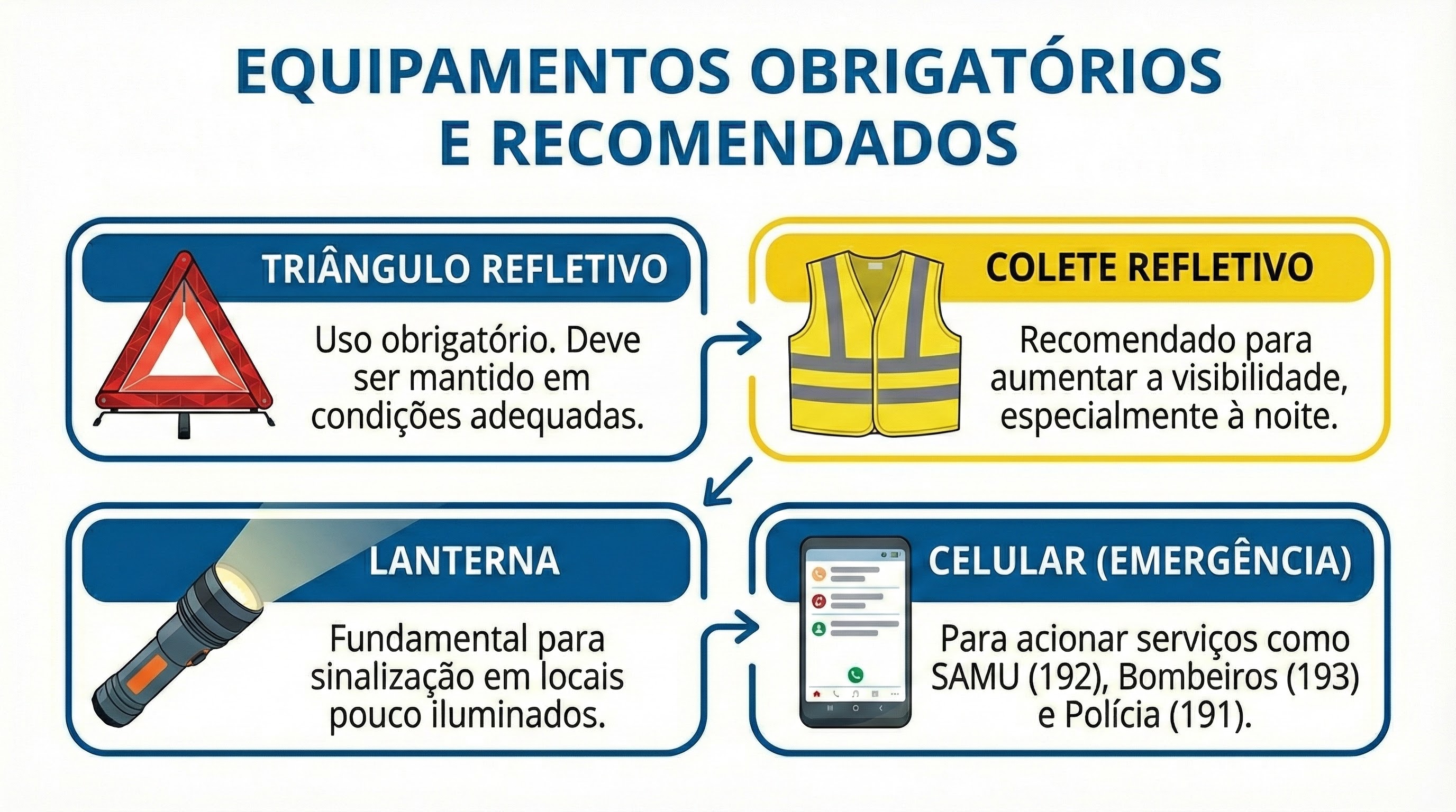 - Triângulo Refletivo: Como mencionado, é de uso obrigatório e deve ser mantido em condições adequadas.