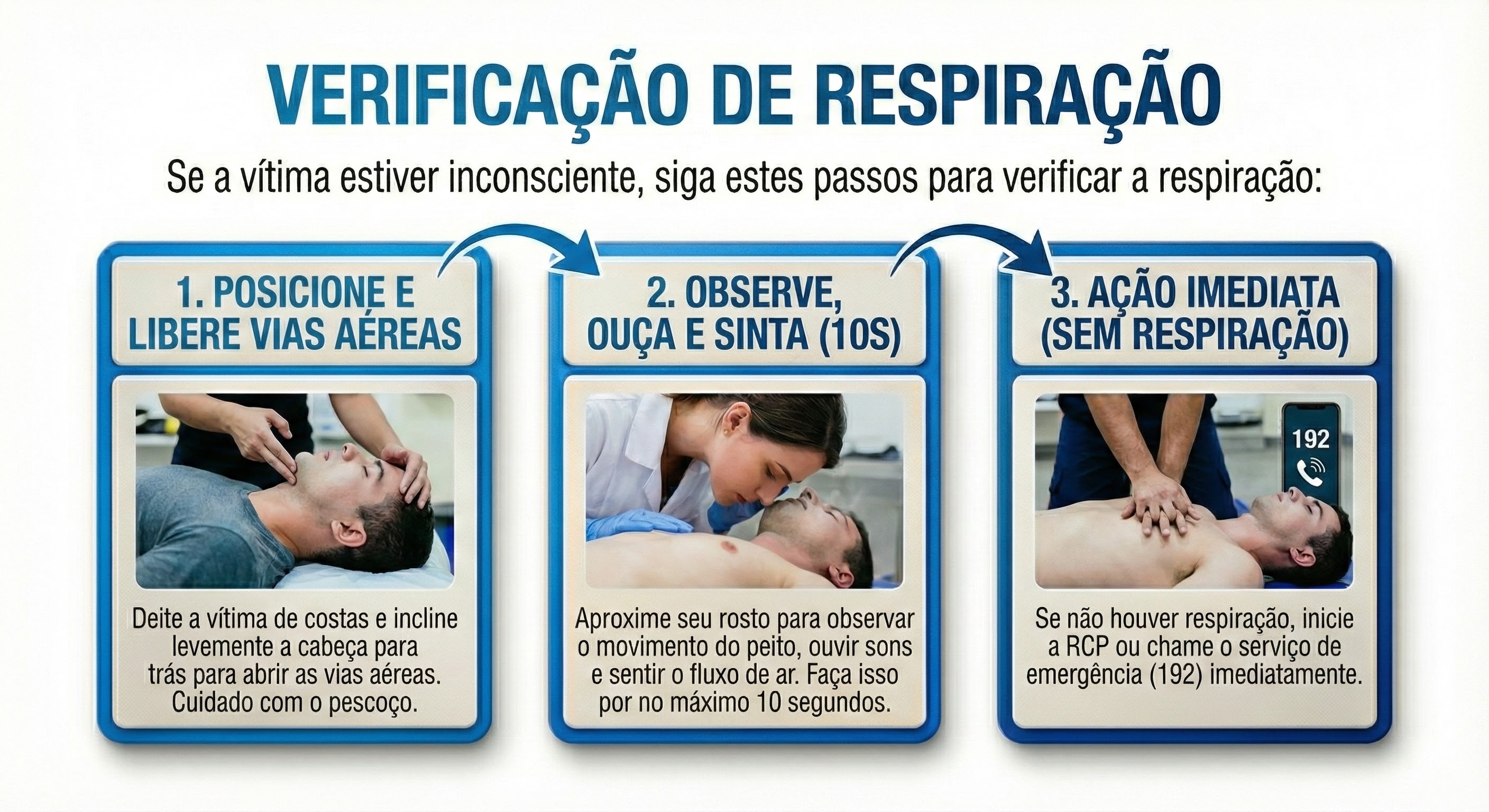 Uma vítima inconsciente pode estar em risco de parada respiratória. Para verificar a respiração: