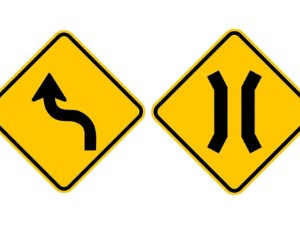 19. Pela ordem, as placas de sinalização, respectivamente, advertem: